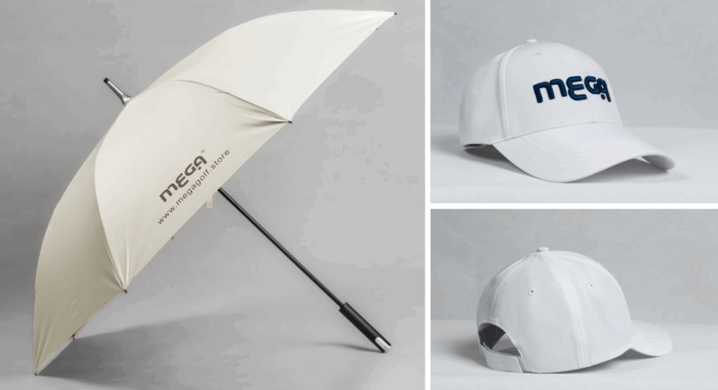 除了服飾外,MEGA PRO高爾夫帽與全天候傘也受到矚目。帽款已被多場國際賽事採用,具備輕量布料與專業排汗內襯設計;而全天候傘則兼顧防曬、防雨與耐風三大功能,跳脫傳統一次性贈品的定位,成為品牌長期曝光的媒介。